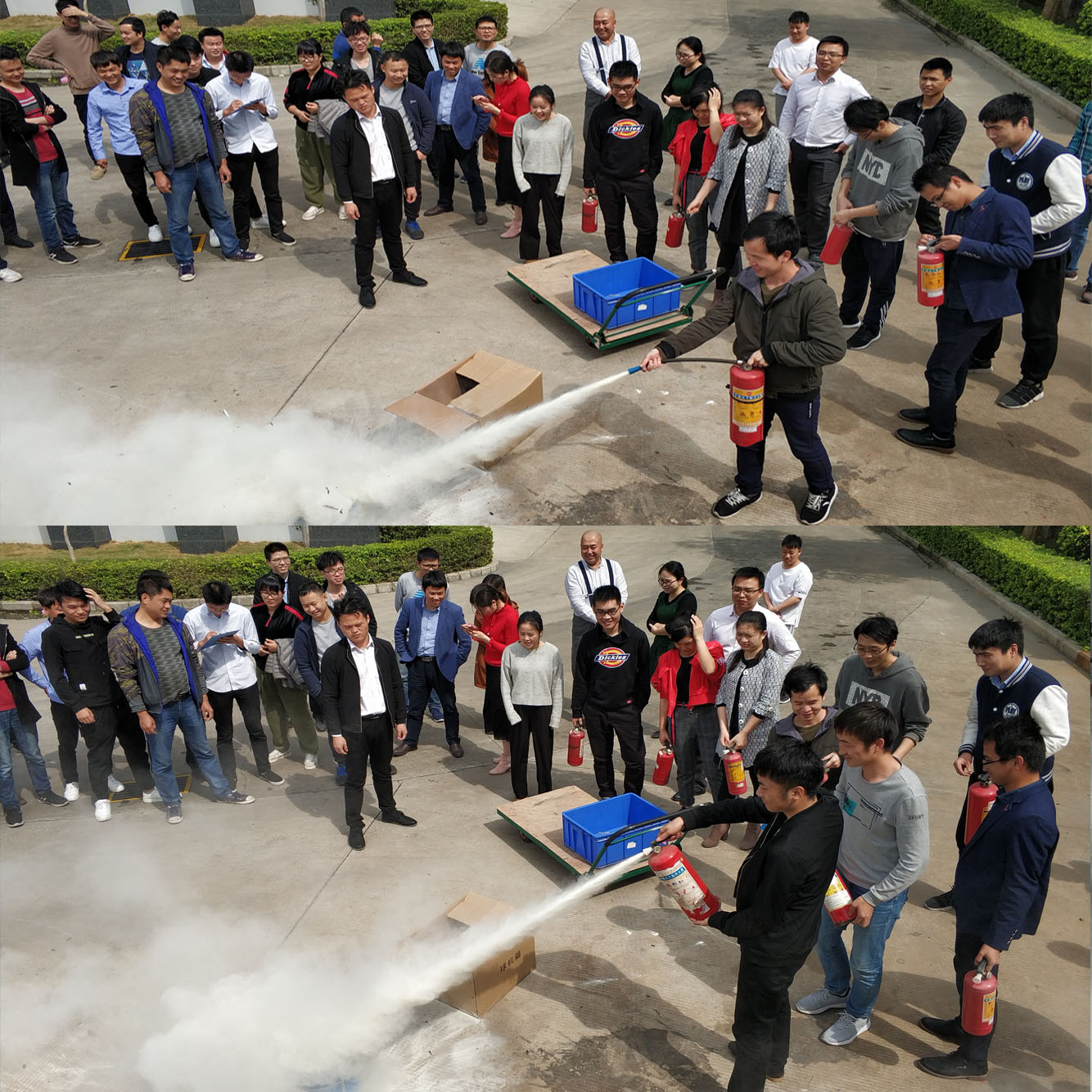 由安全員為參加演練的人員進行如何正確使用消防器材進行了講解,通過結合實際案例,為大家深入講解了火災基本常識、滅火基本常識、火災逃生知識。隨后,參演人員拿起滅火器進行實際操作。實操后公司全體人員 紛紛表示,通過自己的實際操作和學習,不僅掌握了滅火器的使用方法,還增強了消防安全意識,提升了撲滅初期火災的能力。