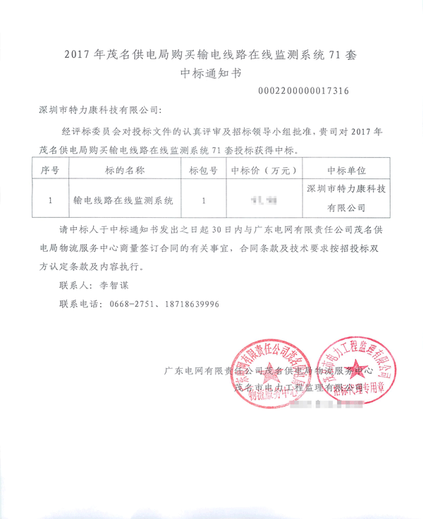 特力康中標國網黑龍江送變電工程公司的2024年度第18次物資類競爭性談判采購項目——慶陽驅鳥器物資框 特力康中標國網甘肅省電力公司省管產業單位2024年第五次物資競爭性談判授權采購項目 中標喜訊:深圳市特力康科技有限公司成功入圍許繼集團綜合能源公司輸電線路視頻在線監測裝置模塊集采項目 中標喜訊:特力康成功中標國網重慶市電力公司渝中一片區項目 特力康成功中標國網天津市電力公司2024年第二次?物?資招標項目 特力康中標國網安徽省電力有限公司蕪湖供電公司2024年3月非物質采購項目 特力康輸電線路智能AI多目監控裝置+傾斜監測守護山西輸電生命線 鄂網“全景眼”:特力康一體化視頻監控系統守護輸電線路 山東電網 “穩塔哨兵”:特力康智能桿塔傾斜監測預警裝置筑牢電力桿塔安全防線 特力康科技輸電線路高清圖像監控裝置,為河南輸電通道筑牢安全屏障 黃土高原護塔穩:特力康傾斜監測裝置為山西電網筑牢根基 黔山冰防線:特力康 “數據 + 圖像” 雙監測守護貴州輸電線路 戈壁林區的 “火情哨兵”:特力康紅外熱成像裝置守護甘肅輸電線路 內蒙電網裝上 “舞動監測眼”:特力康輸電線路防舞動監測系統守護線路安全 寧夏配電線路安裝了我司防外破電子化智能警示牌